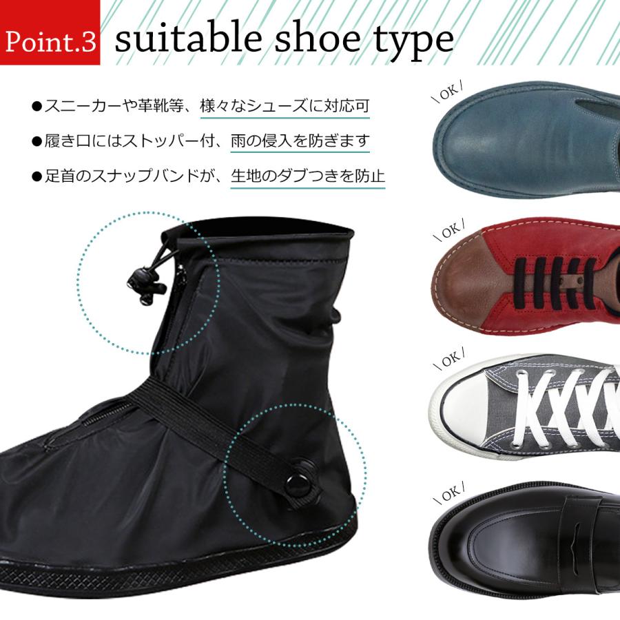レイン シューズカバー 防水 雨 男女兼用 靴のまま履ける 雨具 ブーツ